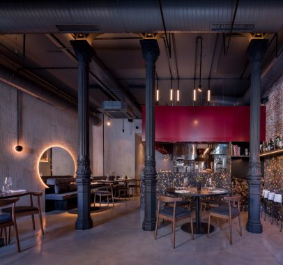 Una iluminación que nace de los fogones y recorre las paredes, para brindar una calidez indiscutible al espacio de Chispa Bistró 😍